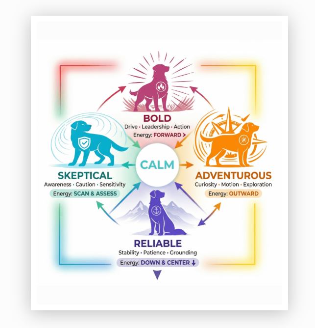 We started our journey together by meeting after both of our spouses passed away unexpectedly. Too young to retire completely, and too old to change direction, we searched for a way to combine our skills and passion to help dogs and pet parents find calm, confident connection and our business was born.