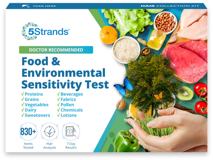 The 5Strands Food & Environmental Sensitivity Test is designed to uncover the hidden triggers behind everyday discomforts, such as bloating, fatigue, skin irritation, or congestion. Using bioresonance technology, this at-home test identifies how your body uniquely interacts with over 830 food and environmental items. By providing a simple hair sample, you gain actionable insights into sensitivities that may be causing discomfort or disrupting your well-being. With this information, you can craft an elimination plan, adjust your environment, and take proactive steps to support your health naturally and effectively.